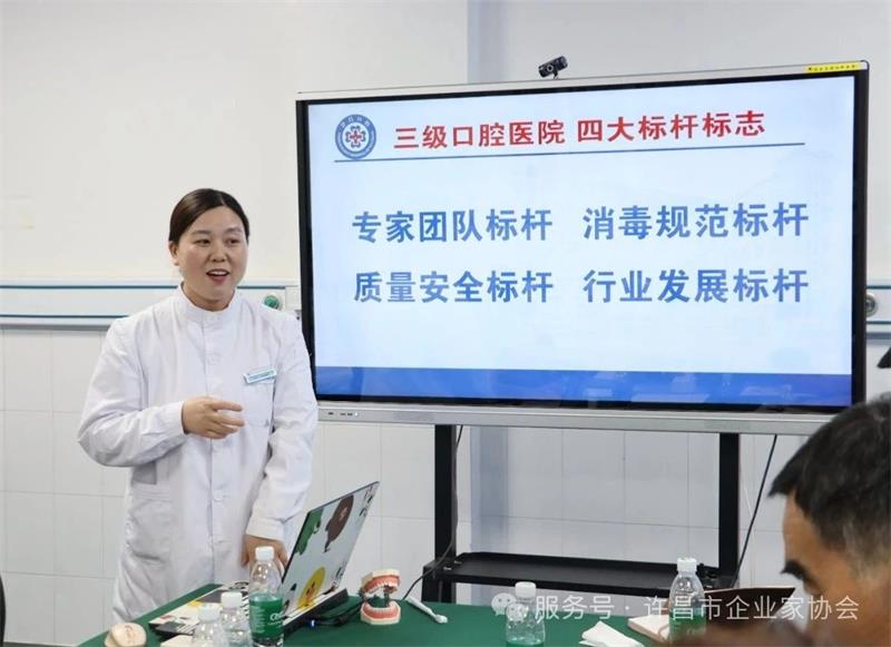 會議特別邀請?jiān)S昌皓博口腔醫(yī)院醫(yī)務(wù)科科長王川為與會企業(yè)家?guī)?口腔保健知識"專題分享。王川從專業(yè)角度深入淺出地講解了口腔健康的重要性、口腔與全身健康的關(guān)聯(lián)、日??谇蛔o(hù)理要點(diǎn)以及醫(yī)療無菌操作規(guī)范等內(nèi)容,為企業(yè)家們上了一堂生動的健康管理課。
