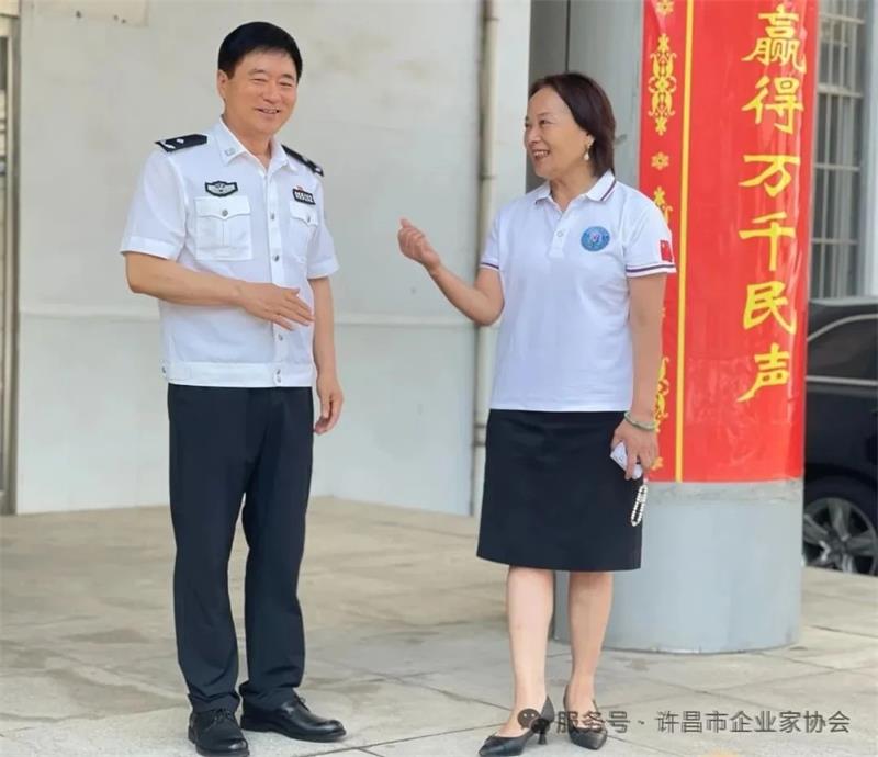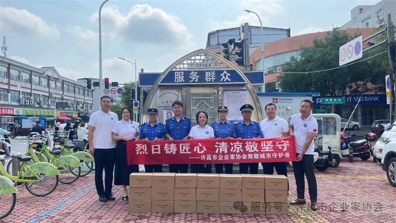 6月30日上午,許昌市企業(yè)家協(xié)會秘書長黃玉霞帶領(lǐng)部分會員企業(yè)代表,先后來到許昌市公安局交通管理支隊(duì)和魏都區(qū)城市管理綜合執(zhí)法大隊(duì)文博中隊(duì),開展"夏日送清涼"慰問活動(dòng),為堅(jiān)守崗位的一線交警和城管隊(duì)員送去定制礦泉水,在高溫酷暑中傳遞社會關(guān)懷。